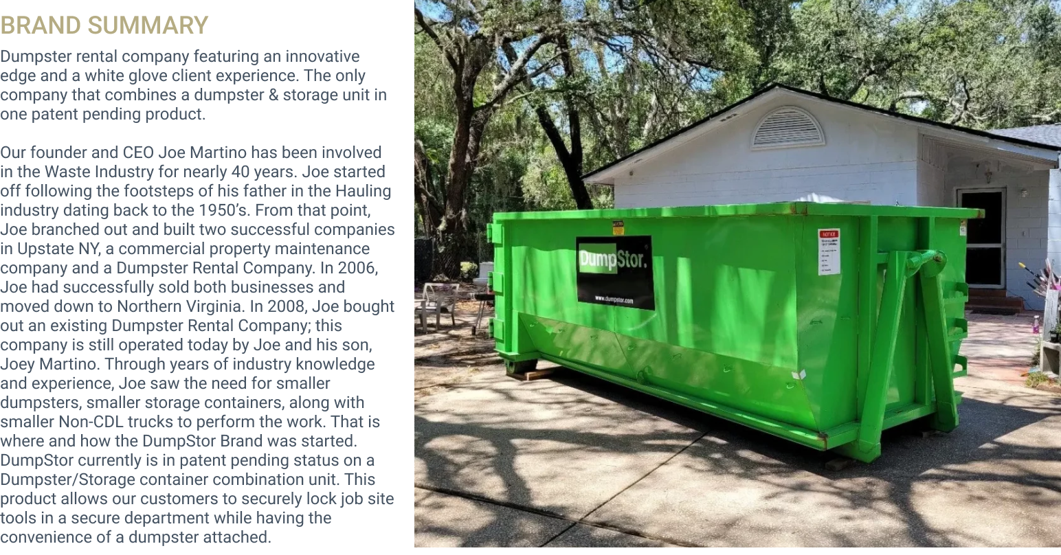 DumpStor provides innovative and efficient solutions to our residential, commercial and industrial customers in the dumpster rental and job-site storage industries. We pride ourselves on servicing our customers according to our Core Values, creating our DumpStor culture. Backed by 50+ years of experience & knowledge in the waste industry